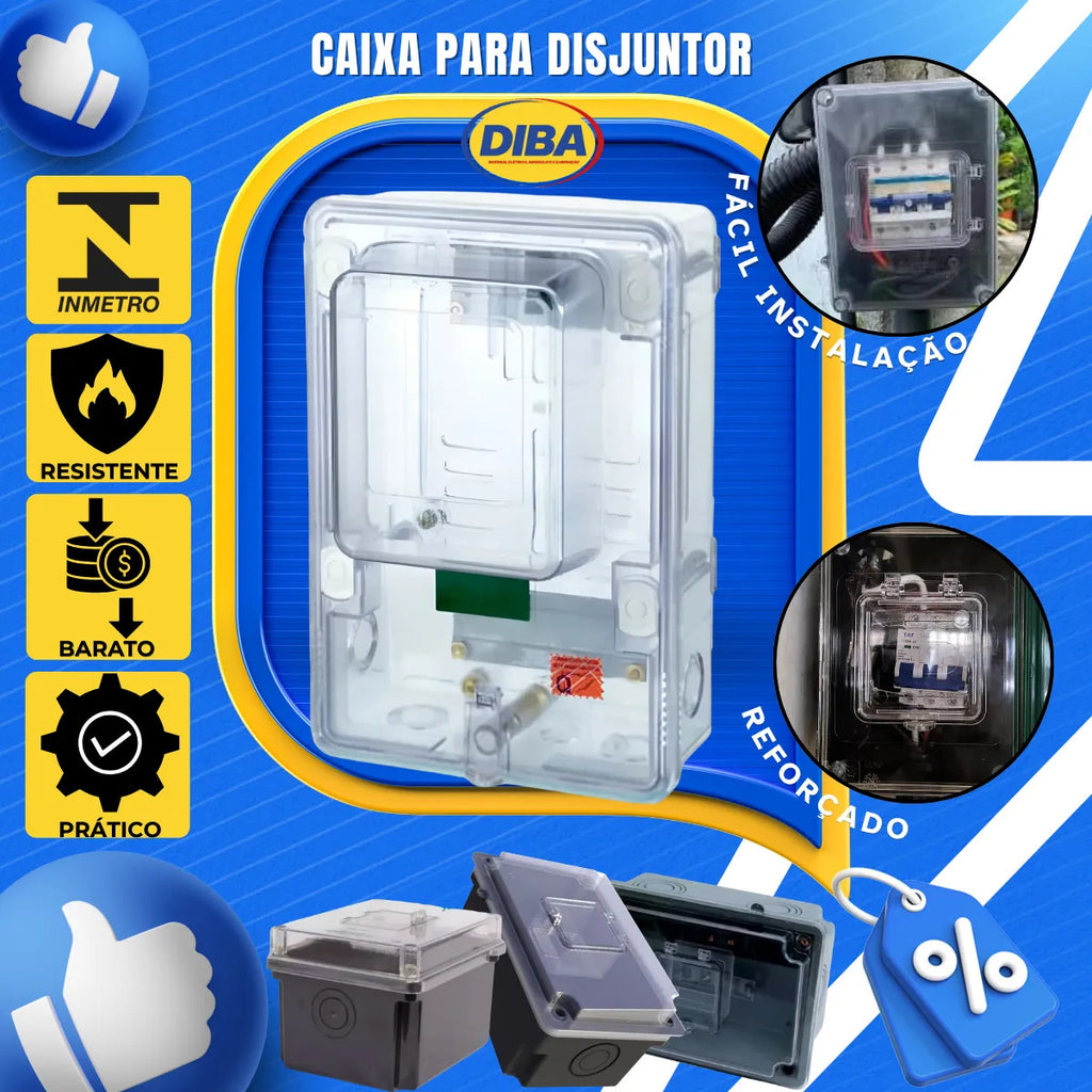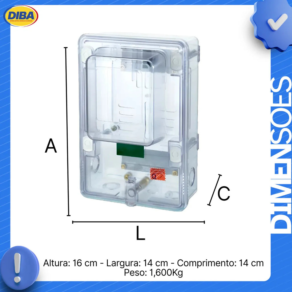 Conta com tampa transparente, que facilita a leitura do medidor sem a necessidade de abrir a caixa, além de possuir estrutura com pré-cortes para passagem de cabos, tornando a instalação mais prática e com acabamento profissional.